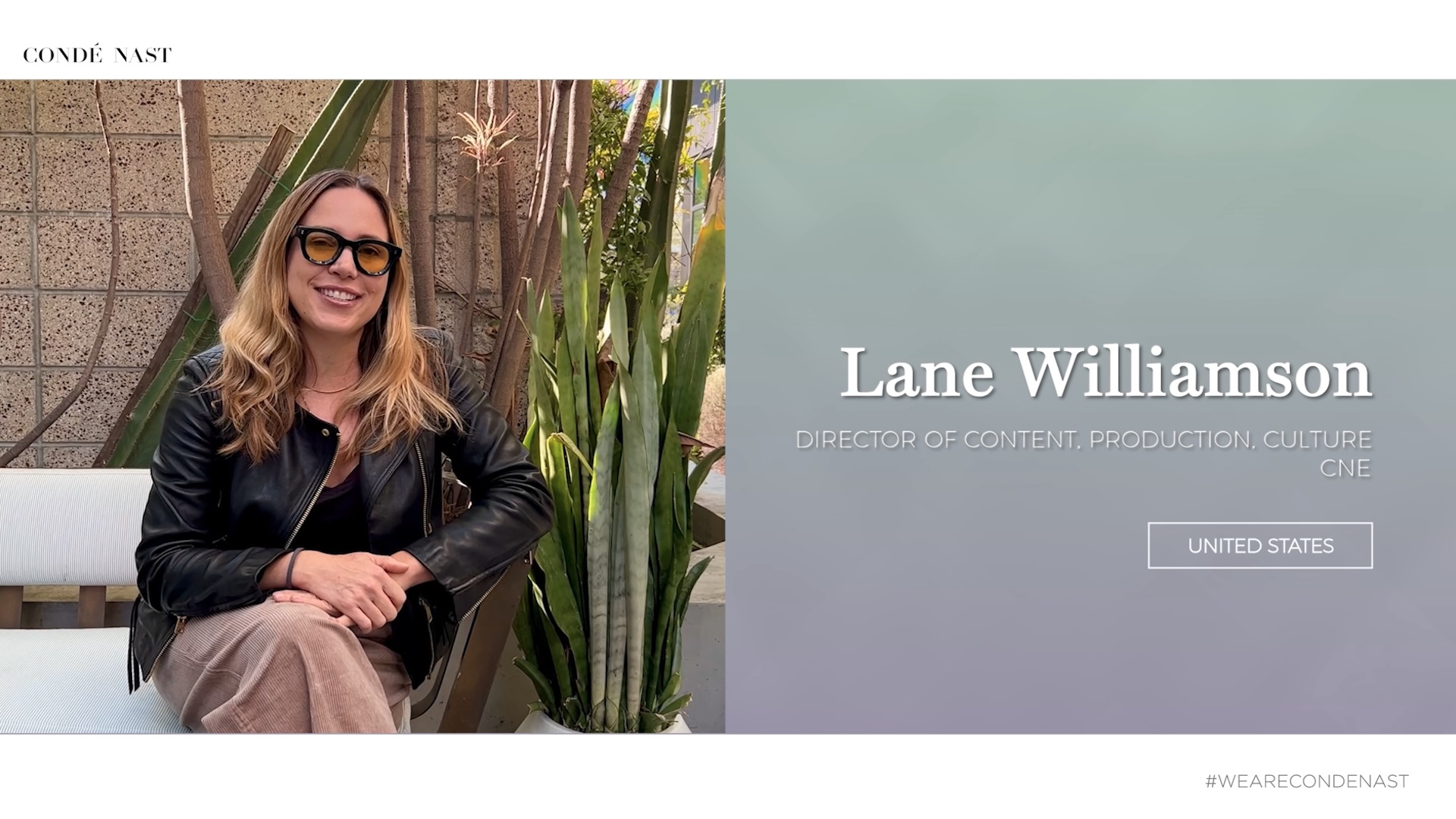 I’ve worked with the internal communications team at Condé Nast in New York City, designing and editing miscellaneous video content for their global meetings and events – involving business updates, people, and sizzle reels.
